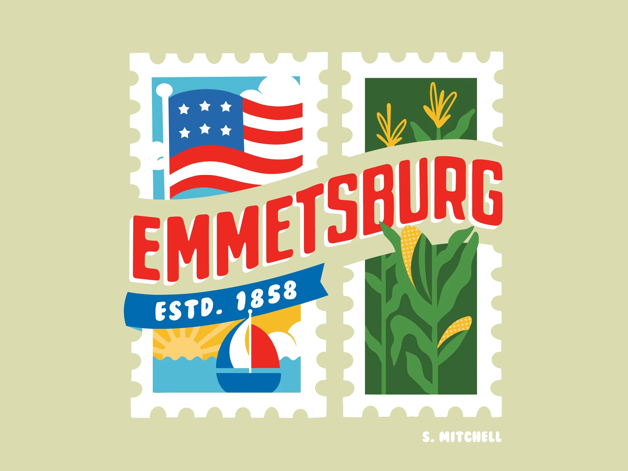 The client came to me wanting to revamp their storefront mural space from an existing mural that had been there for some time. They were open to ideas but wanted it to convey the small town feel of Emmetsburg and include corn fields, Iowa, the American flag and the lake. I provided the client 3 sketched directions. After quickly deciding on the direction the illustration came to life. I was able to complete the installation in just a few short weeks!